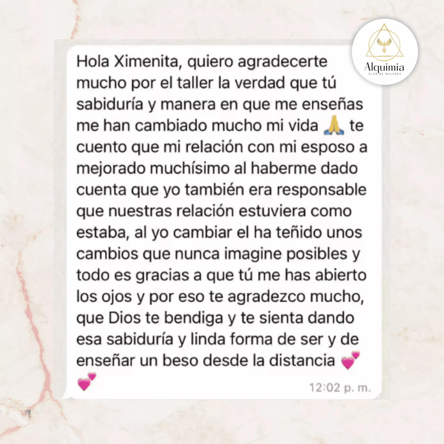 En solo 3 meses comenzarás a ver cambios profundos en ti, tus relaciones y tu negoci, durante 12 meses tendrás el acompañamiento y la comunidad que necesitas para renacer como Mujer Alquimista.